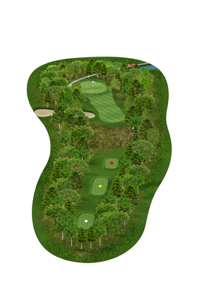 Een korte par-3 die, buiten de rechtse voorzijde, een zeer geonduleerde green kent. Je teeshot iets rechts aanhouden is hier een verstandige keuze gezien de gevaren aan de linkerzijde. Het midden van de green raken is hier altijd een goed schot.