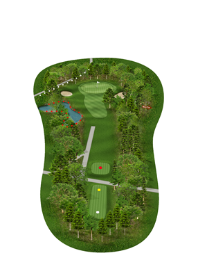 Een niet zozeer lange par-3, maar wel een die zowel aan de linker- als rechtszijde goed bewaakt wordt door alle mogelijke variante van hindernissen. Lang links missen resulteert vaak tot out of bounds, door kort rechts missen geblokkeerd wordt tot een zeer grote boom en bunker.