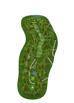 Deze fantastische par-5, die geen bunkers kent, heeft een dogleg naar links. Voor het meest eenvoudige tweede shot, is het praktisch om je teeshot aan de rechterkant van de fairway te positioneren. Denk bij het positioneren van je tweede shot een stap vooruit. Rechts voor de green staat een zeer grote boom die een groot gedeelte van de approaches blokkeert. De green is van de achterkant naar de voorkant downhill en kan dus om precisie vragen met het putten.